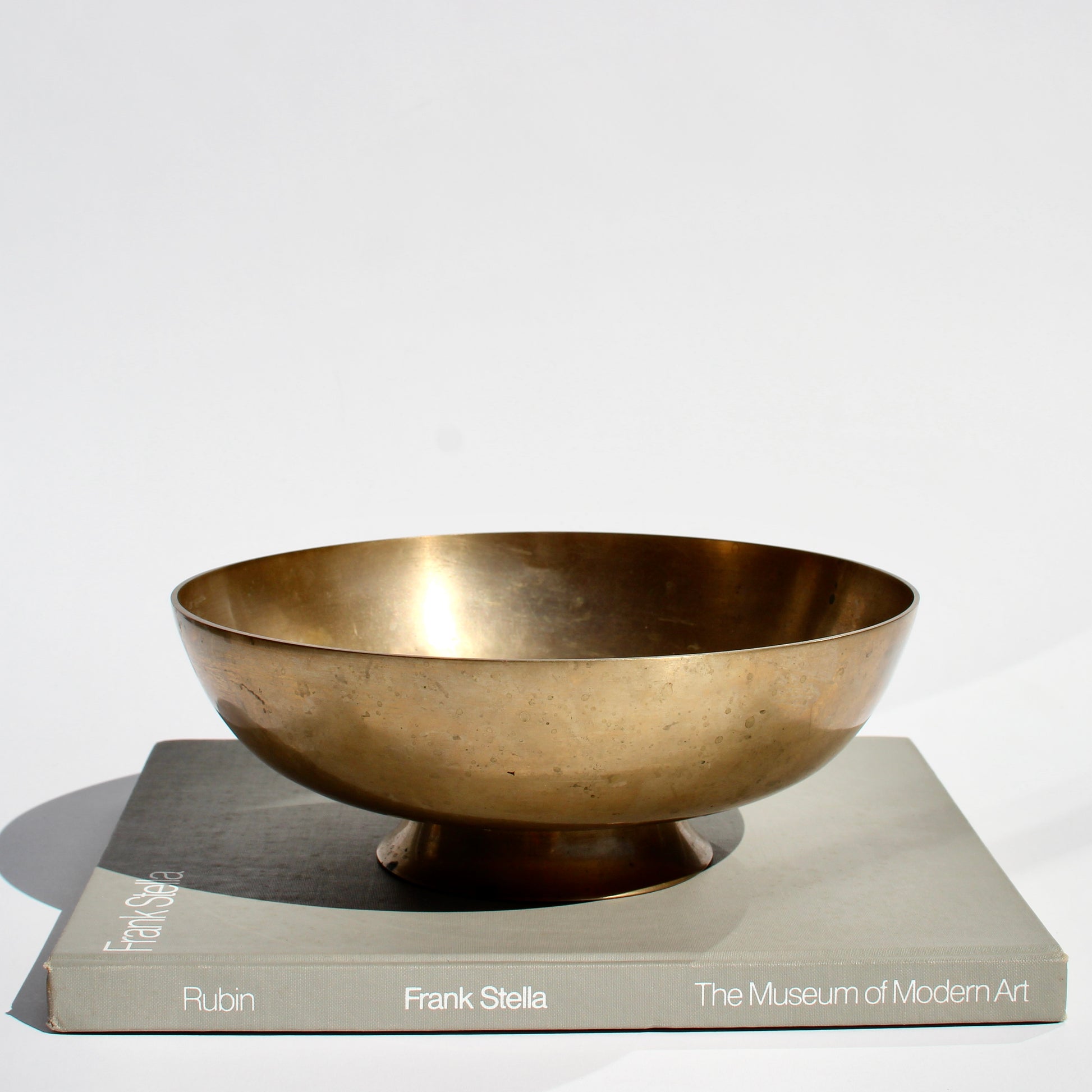 The perfect patina of vintage brass is hard-won, and this footed bowl is beautifully worn in. It's great empty as sculptural piece on a shelf, or as a small catchall for keys, fruit, jewels, and more.