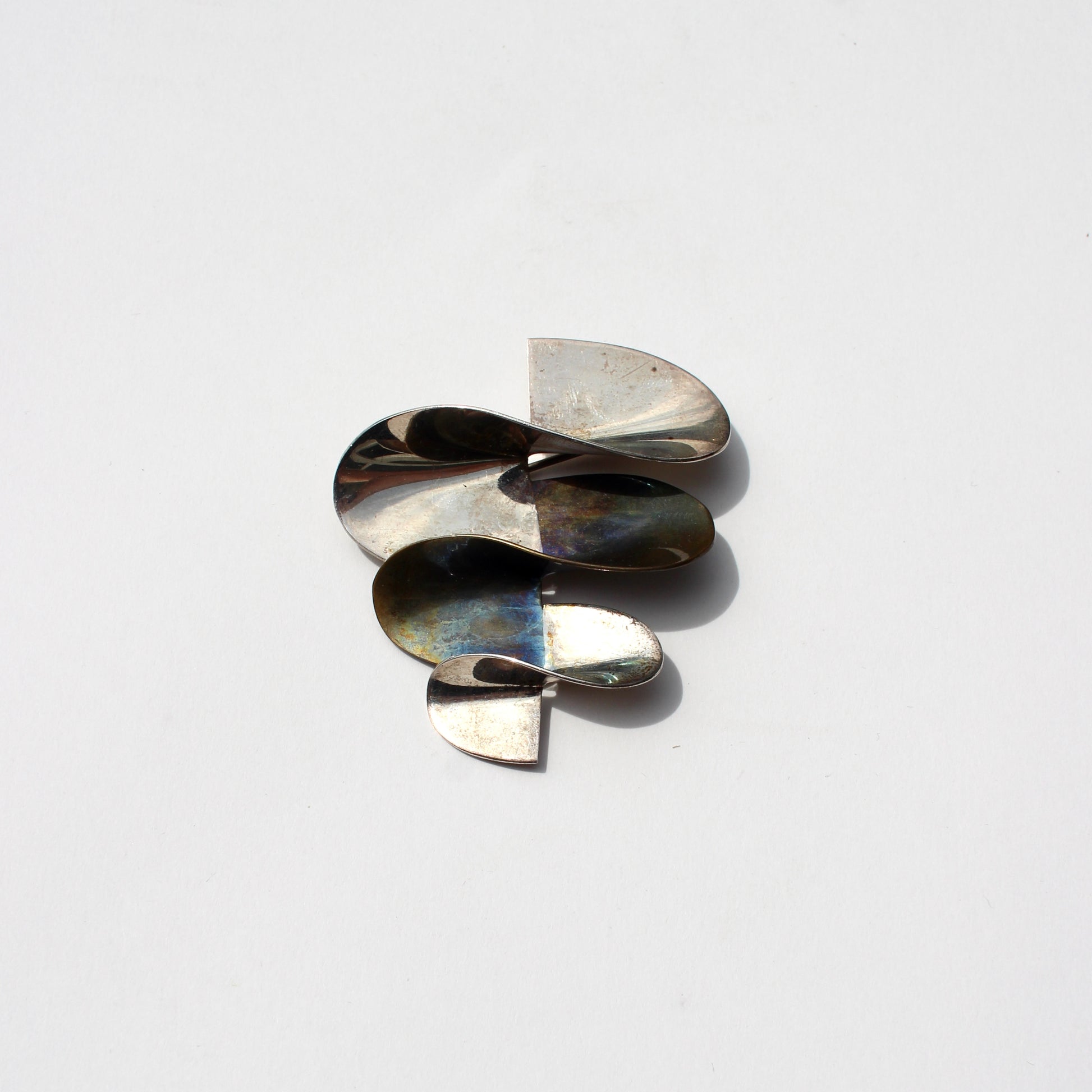 modernist silver + brass brooch
